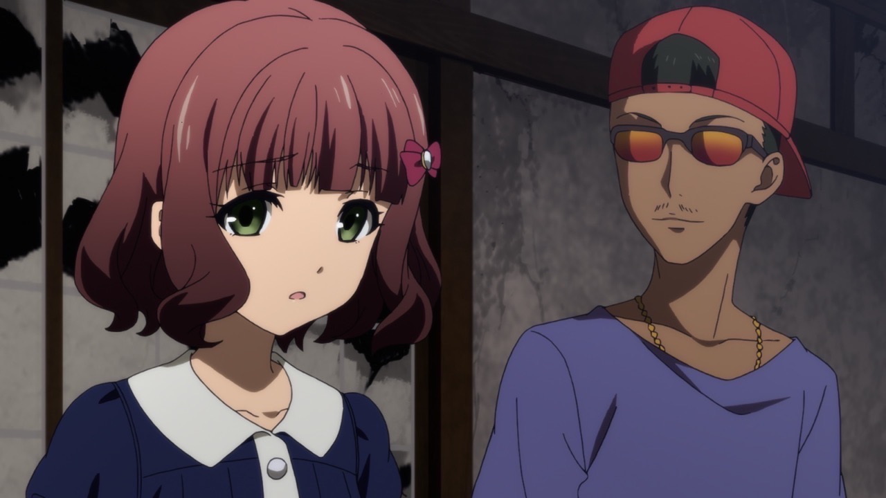 第二話 一寸先は霧 納鳴村の情報を調べていたという大学院生こはるんと合流し、バスはなおも山奥へ進んでいく。無理矢理狭い獣道を走るバスは突然電気がショートし、その混乱で崖から滑り落ちてしまう。激怒するバスの運転手を尻目に、ツアー参加者たちは徒歩で納鳴村を目指すことになった。闇夜の山道を夜通し進んだ彼らは、ついに納鳴村と思しき村にたどり着く。新天地を見つけたことに歓喜する参加者たちだったが、その様子を怪しい影が覗いていた……。 脚本:岡田麿里 絵コンテ:渡部穏寛 演出:渡部穏寛 作画監督:北村友幸、北本由紀